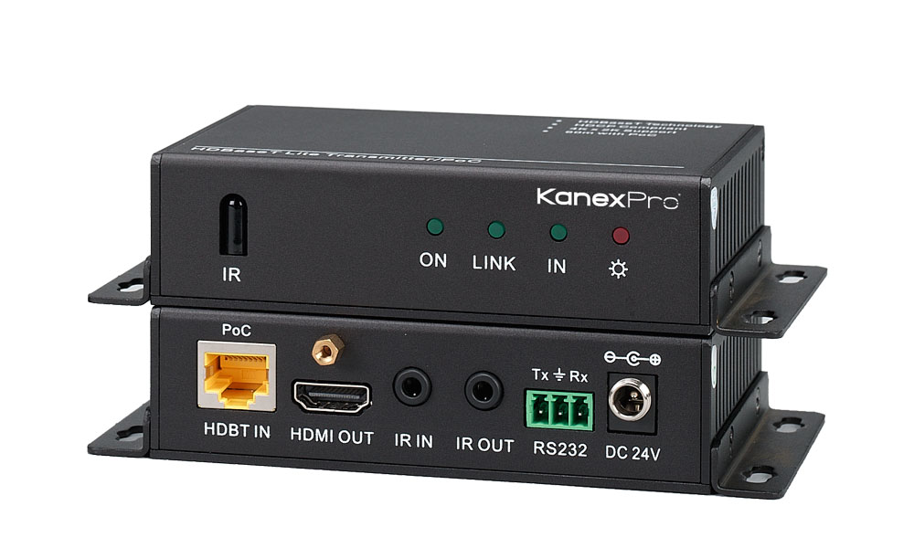 The KanexPro HDBASE70POER is a 4K compliant receiver designed for extending HDMI signals over CAT5e/6 to the display. The receiver connects to HDMI for TV input, bi-directional IR and RS-232 extending out to a cost-effective Cat5e/6 cable for expanded connectivity.
